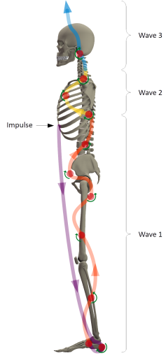 The base pulse is created between rib 8, the root of the foot (heel) and the pelvic floor.