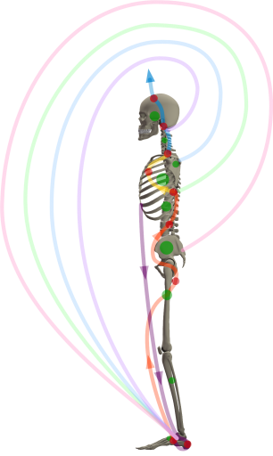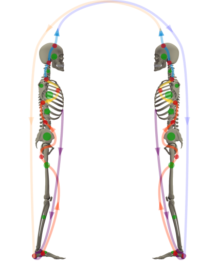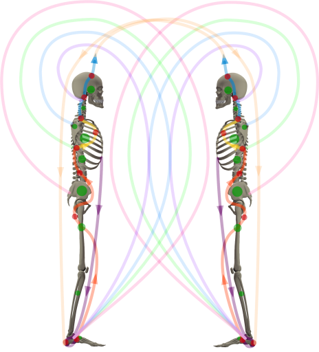 These waves complete the waves within the body to create a wave in space going out of the fontana to return into the root of the foot.